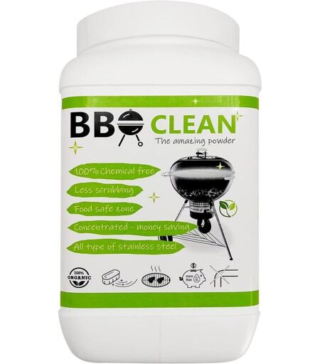 BBQ CLEAN è una soluzione naturale al 100% per la pulizia del Barbecue. Si può dissolvere BBQ Clean The Amazing Powder in acqua o spargerlo direttamente sulla superficie in base al livello di sporco della griglia o del barbecue. Osservare come lo sporco, anche il più resistente, si dissolve sotto l'effetto di BBQ Clean The Amazing Powder: un potente detergente rivoluzionario che scioglie il grasso più resistente eliminando residui e incrostazioni. Efficace nel rimuovere lo zucchero cristallizzato dei rubs dalle griglie, affumicatori, forni, microonde e tutte le superfici in acciaio inossidabile. BBQ Clean The Amazing Powder, essendo naturale al 100%, è inodore, atossico e sicuro a contatto con gli alimenti. I test sulla biodegradabilità hanno stabilito che BBQ Clean ha un impatto inquinante sull' ambiente 53 volte inferiore rispetto all'aceto! Non solo facile da usare, ma anche un ottimo alleato per rispettare l'ambiente! Si può sciogliere in acqua o cospargerlo direttamente sulla ...