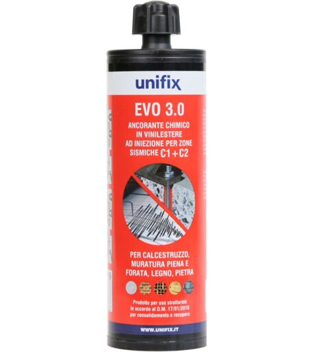 Ancorante chimico bicomponente Alta resistenza ancorante chimico bicomponente vinilestere evo 3.0 - tripla certificazione, senza stirene, prodotto per uso strutturale provvisto di benestare tecnico europeo opzione 1 - 7 e qualifica antisismica c1+c2. omologazione valida per un ampia gamma di barre filettate e ad aderenza migliorata idoneo per fissaggi pesanti e medio pesanti. Caratteristiche Tecniche Qualifica antisismica c1+c2: - Certificato ETA-20/0678 - Muratura - Certificato ETA-20/0679 - Barre aderenza migliorata (Rebar) e riprese di getto - Certificato ETA-20/0680 - Calcestruzzo fessurato (Op.1) e non fessurato (Op.7) - Prodotto omologato per fissaggi a profondità variabile di ancoraggio - Facilità di penetrazione ed alto valore di aderenza - Utilizzabile anche su legno ed in presenza di foro bagnato o allagato - Resistente agli agenti chimici a posa ultimata - Indicato per calcestruzzo fessurato e non fessurato, calcestruzzo aerato autoclavato, mattoni pieni e forati, muratura, ...