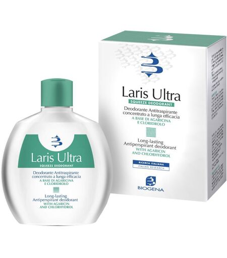 Laris Ultra - Deodorante antitraspirante concentrato a lunga efficacia A base di Agaricina e Cloridrolo. Deodorante antitraspirante a lunga efficacia (oltre 24 ore). Grazie all'Agaricina (estratto ultrapuro di Agarico del Larice) e Cloridrolo, potenziate dalla presenza di Argento Citrato, mantiene … ...