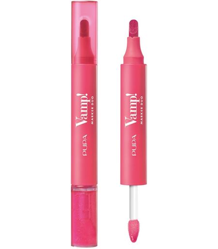 La lip combo per labbra irresistibilmente juicy!Da un lato un pennarello per definire e colorare le labbra con estrema facilità, dall'altro un oil gloss dall'effetto brillante.Il pennarello è caratterizzato da una formulazione tinta labbra fresca e dall'intensità modulabile. Si fissa creando un film impercettibile a prova di bacio. La sensazione è quella di non indossare nulla se non il proprio colore preferito.Il suo applicatore dalla forma ergonomica permette un doppio utilizzo. Il lato sottile definisce il contorno labbra e crea un perfetto overline. Il lato piatto riempie le labbra con un effetto di colore modulabile da stemperato a pieno.L'oil-gloss è lo step finale per un effetto lucentezza 3D. La sua texture bouncy e sensoriale rende le labbra morbide e brillanti.Dermatologicamente testato.Made in ItalyMODO D'USO:Un prodotto, 3 effetti make-up!OVERLINE EFFECT: definisci il contorno labbra con il lato sottile di lip marker e sfuma verso l'interno.FULL EFFECT: applica lip marker con il lato piatto su tutte le labbra e sfuma massaggiandole.GLOSSY EFFECT: applica oil-gloss da solo o sopra il pennarello.Tips per l'utilizzo del lip marker:Applicare un lip marker può sembrare più complicato di quanto pensi.Ecco qualche consiglio per ottenere un risultato impeccabile.Labbra lisce e levigate sono la base ideale. Applica un balsamo labbra e tampona per eliminarne qualsiasi residuo prima dell'applicazione del marker.Per un risultato di colore infuso sulle labbra, applica un leggero strato di lip marker e sfumalo massaggiando tra loro le labbra o con un polpastrello. Ripeti l'applicazione e la sfumatura per una maggiore intensità del colore.Strucca con uno struccante bifasico. Sulle tonalità più intense, un leggero velo di colore potrebbe rimanere dopo lo strucco.Riponi con la punta rivolta verso il basso. Chiudi dopo l'uso.Per facilitare la fuoriuscita del prodotto dopo un periodo di inutilizzo, agitalo e, se necessario, strofina la punta su una salviettina struccante o su una velina. Applica poi una leggera pressione con la punta sulla velina per riattivare perfettamente l'uscita del colore.BENEFICI:Il lip marker è caratterizzato da una formulazione base acqua fresca e impercettibile. Con Acido Ialuronico per labbra setose nell'immediato e nel tempo.Oil-gloss è formulato per unire il comfort e l'idratazione di un olio labbra alla lucentezza di un gloss. Con derivati dell'Olio di Cocco e Olio di Semi di Lampone dalle proprietà emollienti.Dermatologicamente testato.Made in Italy ...