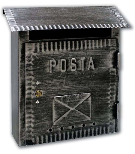 Cassetta con tettuccio; Impostazione: Feritoia Imbucalettere e ritiro posta frontale; Misure: 260 x 100 x h 265 mm; Colore/finitura: Nero; Materiale: Ferro Battuto lavorato a mano non verniciato; Serratura: Cilindro di sicurezza con due chiavi in dotazione; Cassetta postale per esterni dal design singolare particolarmente indicata per una casa dallo stile rustico. Cassetta postale Rustica ferro battuto Cassetta con tettuccio. Impostazione: Feritoia Imbucalettere e ritiro posta frontale. Misure: 260 x 100 x h 265 mm. Colore/finitura: Nero. Materiale: Ferro Battuto lavorato a mano non verniciato. Serratura: Cilindro di sicurezza con due chiavi in dotazione. Cassetta postale per esterni dal design singolare particolarmente indicata per una casa dallo stile rustico. ...
