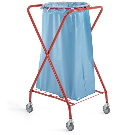 Carrello Dust tondo verniciato pieghevole completo di base ed elastico fermasacco, utilizzato per la raccolta dei rifiuti con capacità di 120 Lt. Si può applicare un sacco da 120 Lt. ...