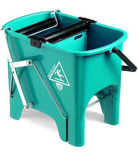 Secchio in polipropilene con strizzatore a rulli in gomma e pedale integrato. Paratia per la divisione della soluzione detergente dall'acqua e quindi dell'acqua pulita dall'acqua sporca. Dotato di una maniglia in plastica posta nella parte lunga che stabilizza il secchio durante il trasporto, anche quando ci sono livelli differenti di soluzioni. Compatto, ergonomico e riciclabile. Ideale per il lavaggio di pavimenti in piccoli ambienti. CARATTERISTICHE TECNICHE - Capacità: 15 Lt. - Dimensioni cm (WxDxH): 46 x 32 x 35 - Materiale: Secchio in polipropilene (PP) - Rullo in gomma - Pedale in metallo ...