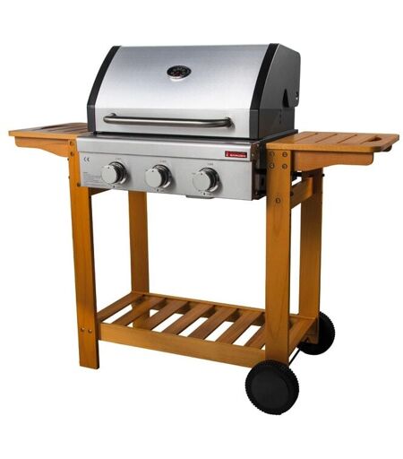 Barbecue a gas Australia 3 fuochi Wood, 130x58x115 cm - Sandrigarden.Barbecue a gas Australia con potenza 10,8 kW dispone di 3 fuochi in acciaio inox e accensione rapida automatica. Presenta due piani laterali di appoggio e un ripiano inferiore in legno. Possiede un telaio in legno FSC e un coperchio con termometro a doppio strato rivestimento esterno in acciaio inox. L'area di cottura misura 60x41 cm e le griglie sono in acciaio smaltato antigraffio. il barbecue a gas Oceania è dotato di pannello di controllo in acciaio inox e camera di combustione. Il barbecue a gas di Sandrigarden è munito di 2 ruote per agevolare lo spostamento e il trasporto. Inclusi 3 kg di roccia lavica. Caratteristiche del prodotto Ruote 2 Alimentazione Gas Marca Sandrigarden Potenza (W) 10800 Dimiensioni prodotto Larghezza: 1.3 m. Altezza: 1.15 m. Profondit: 58.0 cm. Peso: 33.2 Kg. Dimensioni Imballo Larghezza: 57.0 cm. ...