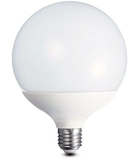 Lampadina LED a globo Duralamp, con le seguenti caratteristiche: Tensione 220-240 Vac Potenza 22W (equivalente a una lampadina tradizionale di 150W) Luce fredda 6400K Attacco E27 Non dimmerabile Globo opalino con sorgenti LED di nuova generazione realizzate con tecnologia SMD e chip ad alta efficienza. Una lampada creata per soddisfare esigenze di illuminazione generale ed ottenere al contempo un importante risparmio energetico. Ottima emissione luminosa, in grado di sostituire una globo ad incandescenza da 125W od una lampada fluorescente a risparmio energetico da 30W. Realizzato in polimeri termoconduttivi con innesti in alluminio. Nota bene: Non impiegare con variatore di luce. Caratteristiche: Tensione 220-240 Vac Non dimmerabile LED RA >80 Grado di protezione IP20 Durata vita 15000 h Temperatura di esercizio -25°C - +35°C Angolo fascio 240 gradi Lumen 2450 Dimensioni: diametro 120 mm - altezza 159 mm Tempo di innesco ...