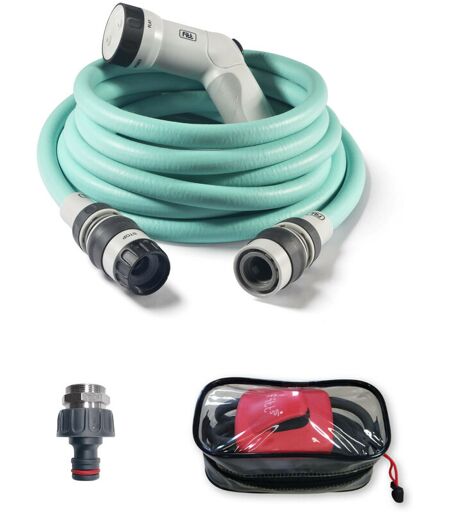 FITT - ikon plus 15m Kit con Tubo Acqua da Giardino Estensibile, Leggero con Pistola Multigetto, Adattatore rubinetto e Supporto, Aquamarine