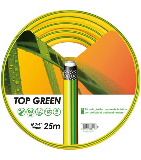 Il tubo retinato FITT Top Green dal diametro di 19 mm e lunghezza di 25 m è un accessorio essenziale per il tuo giardino. Questo tubo da giardino retinato è appositamente progettato per l`uso hobbistico, offrendo praticità e qualità eccezionali. Con una pellicola interna di qualità, l`acqua che scorre attraverso il tubo rimane incontaminata garantendo la salute delle tue piante. La copertura esterna di colore giallo, impreziosita da due righe verdi, non solo conferisce un tocco accattivante, ma serve anche come indicatore visivo della presenza del tubo nel tuo giardino. ...