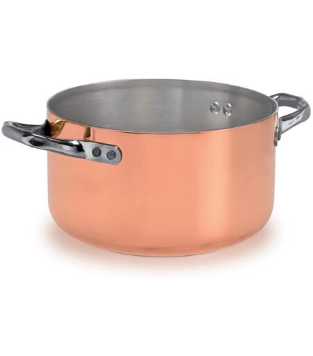 Casseruola Alta in Rame Stagnato per induzione con due maniglie in acciaio inox, diam. 28cm ...