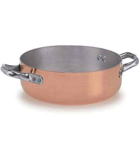 Casseruola Bassa in Rame Stagnato per induzione con due maniglie in acciaio inox, diam. 24cm ...