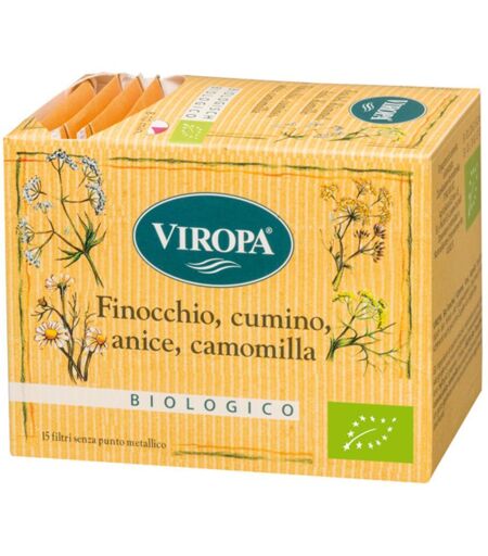 VIROPA Finocchio, anice, cumino, camomilla - Descrizione Gli ingredienti di questa miscela selezionata ed unica del suo genere sono una combinazione indovinata che racchiude in sé tutte le proprietà dei singoli componenti, i quali sono conosciuti da tempo immemorabile per le loro molteplici proprie… ...