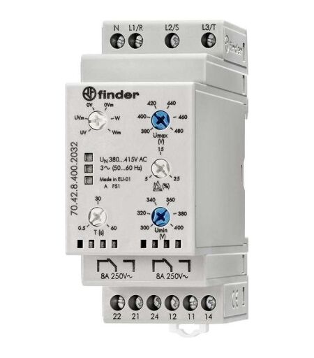 Finder Netzüberwachungsrelais 70.42.8.400.2032 70.42.8.400.2032 3-Phasen-Netzüberwachung (380 - 415 V/AC), N-Leiter-Über (70.