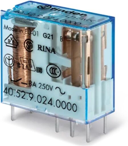 Finder Relè di potenza, 24 Vdc, DPDT, 8 A, foro passante (THT), serie 40.52 - 40.52.7.024.0000