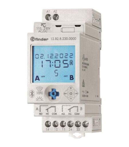 Finder Zeitschaltuhr für Hutschiene 12.B2.8.230.0000 2 Wechsler 30 A 400 V/AC Astronomisch, Zufallsschaltung, Jahresprogramm (1