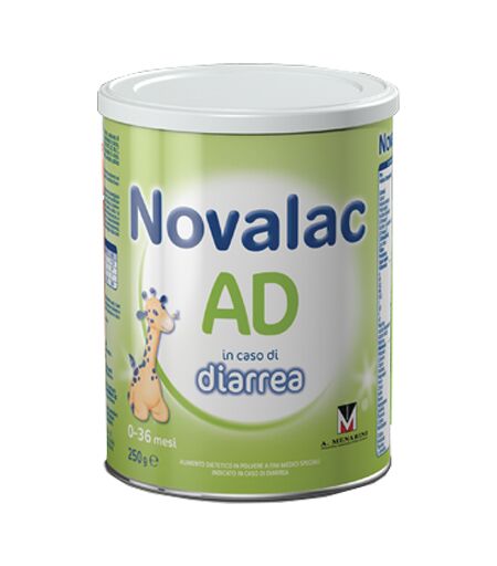 Novalac AD in caso di diarrea Descrizione Alimento a fini medici speciali indicato in caso di diarrea. Novalac AD può essere utilizzato come unica fonte di nutrimento nei lattanti da 0 a 6 mesi, durante e dopo i casi di diarrea, e come parte di una dieta di svezzamento nei lattanti oltre i 6 mesi. Al gradevole gusto di banana. Ingredienti Purea di banane, maltodestrine, olii vegetali (palma, soia, cocco) purea di mele, caseinato di potassio ( latte), crema di riso parzialmente idrolisata, fruttosio, destrosio, cloruro di calcio, carbonato di calcio, cloruro di sodio, citrato trisodico, emulsionante (lecitina di soia), fosfato tricalcico, vitamine (A, B1, B12, B2, B6, C,D3, E, K1, biotina, acido folico, niacina, acido pantotenico), L-cistina, solfato di magnesio, idrossido di calcio, taurina, fosfato disodico, cloruro di colina, L-carnitina, solfato di zinco, antiossidanti (tocoferoli), inositolo, solfato di ferro, solfato di rame, solfato di manganese, ioduro di potassio, selenito di sodio. Senza lattosio. Caratteristiche nutrizionali Valori medi per 100 g per 100 ml Energia 2.002,6 kJ/477,4 kcal 260,3 kJ/62,1 kcal Grassi di cui acidi grassi saturi acidi grassi monoinsaturi acidi grassi polinsaturi -acido linoleico (omega 6) -acido alfa-linoleico (omega 3) 20,6 g 10 g 5,3 g 4,3 g 3,8 g 380 mg 2,7 g 1,3 g 0,7 g 0,6 g 0,5 g 49,4 mg Carboidrati di cui zuccheri 54,8 g 16,5 g 7,1 g 2,1 g Fibre 1,2 g 0,2 g Proteine 17,6 g 2,3 g Sale/sodio 0,6 g/240 mg 0,08 g/31,2 mg Vitamina A 450 mcg RE 58,5 mcg RE Vitamina B1 400 mcg 52 mcg Vitamina B2 800 mcg 104 mcg Vitamina B6 350 mcg 45,5 mcg Vitamina B12 1,5 mcg 0,2 mcg Vitamina C 60 mg 7,8 mg Vitamina D3 7,5 mcg 1 mcg Vitamina E 11 mg alfa-TE 1,4 mg alfa-TE Vitamina K1 30 mcg 3,9 mcg Niacina 4,5 mg 0,6 mg Acido pantotenico 2,4 mg 0,3 mg Acido folico 60 mcg 7,8 mcg Biotina 15 mcg 2 mcg Potassio 640 mg 83,2 mg Cloruro 380 mg 49,4 mg Calcio 390 mg 50,7 mg Fosforo 200 mg 26 mg Magnesio 50 mg 6,5 mg Ferro 0,8 mg 0,1 mg Zinco 3,5 mg 0,5 mg Iodio 50 mcg 6,5 mcg Rame 350 mcg 45,5 mcg Manganese 200 mcg 26 mcg Selenio 10 mcg 1,3 mcg Fluoruro Cromo Molibdeno Colina 40 mg 5,2 mg Inositolo 25 mg 3,3 mg Taurina 44 mg 5,7 mg L- carnitina 9 mg 1,2 mg Formula ipotonica a bassa osmolarità (188 mOsm/L) e concentrazione adattata di elettroliti (Na, Cl, K), per assicurare una corretta reidratazione. Bassa concentrazione di ferro, per scongiurare sovrainfezioni. Elevato contenuto proteico (2,3 g/100 ml) 90% caseina, 10% crema di riso, per un rapido recupero energetico. Profilo di carboidrati facilmente digeribile e altamente energetico, senza lattosio e saccarosio, con glucosio e fruttosio, maltodestrine e amido di riso. Modalità d'uso In caso di diarrea smettere di utilizzare il latte abitualmente usato. Usare soltanto Novalac AD per qualche giorno per la preparazione di biberon e cereali senza latte e glutine. In seguito il latte abituale può essere re-introdotto gradualmente sotto controllo medico. Questo schema di alimentazione... ...