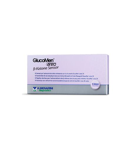 GlucoMen areo B - Ketone Sensor - Descrizione Dispositivo medico - diagnostico in vitro. Sensori per l'autocontrollo della chetonemia con lo strumento GlucoMen areo 2K. Sono sensori indicati per la determinazione quantitativa del beta - idrossibutirrato (BOHB o beta - chetone) nel sangue intero cap… ...