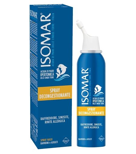 ISOMAR Naso Spray Decongestionante - Dispositivo medico CE0123 di classe IIa. Soluzione ipertonica a base di acqua di mare allo stato puro appositamente studiata per ottenere una efficace azione decongestionante naturale delle mucose nasali. L'acqua di mare ipertonica libera il naso d… ...
