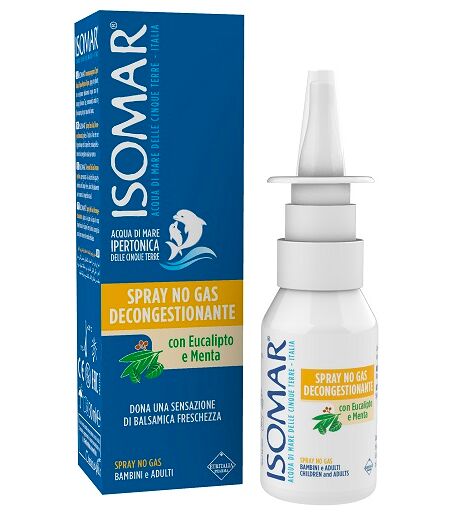 ISOMAR       Naso   Spray No Gas Decongestionante Dispositivo Medico CE. Soluzione ipertonica a base di acqua di mare allo stato puro e olio essenziale di eucalipto appositamente studiata per ottenere una efficace azione decongestionante naturale delle mucose nasali ed una sensazione di imme ...