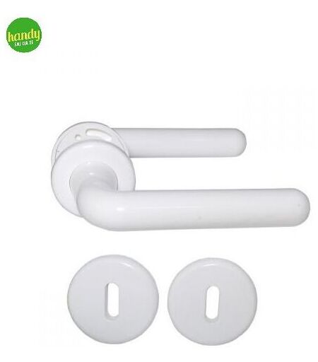 Set di due maniglie per porte interne con rosette inferiori per chiave standard. Nessuna vite a vista, grazie alle rosette Composte da due parti: montaggio interno ed esterno come tassello. Le maniglie sono realizzate in nylon dal brand Bolis Italia Italia. Il set comprende: due maniglie, due piastre con foro per serratura, perno da 8 mm e viti per il montaggio. ...
