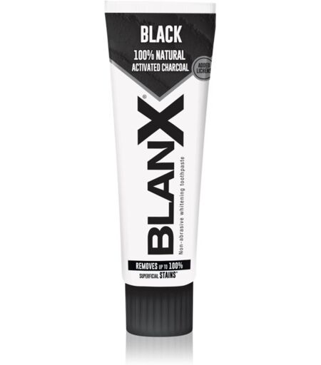 BlanX Black, 75 ml, Dentifrici unisex, Il dentifricio BlanX Black è pensato per sbiancare delicatamente i denti. Rimuove efficacemente la pigmentazione indesiderata dai denti e il suo uso regolare ti ricompenserà con un sorriso più luminoso. Caratteristiche: sbianca i denti combatte la carie e la placca dentale rinfresca l’alito Modo d’uso: Utilizzare almeno 2 volte al giorno. Lavare i denti accuratamente per almeno 2 minuti. ...