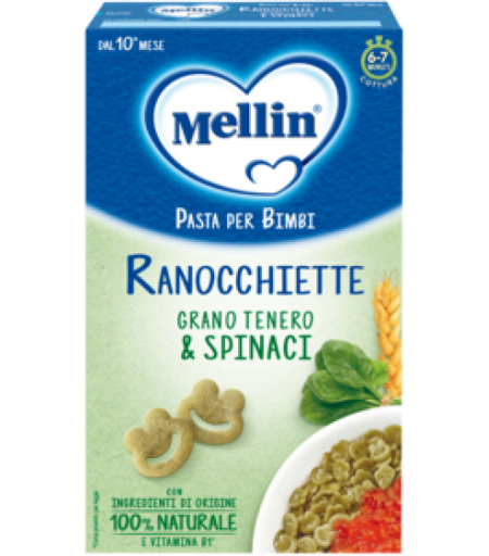 Mellin PASTA PER BIMBI - RANOCCHIETTE GRANO TENERO & SPINACI - Descrizione Alimento per la prima infanzia. Pastina di grano tenero e spinaci. Indicato a partire dal 10° mese compiuto, salvo diverse indicazioni del Pediatra. Ingredienti Farina di grano tenero, spinaci in polvere (2%), vitamina B1. P… ...
