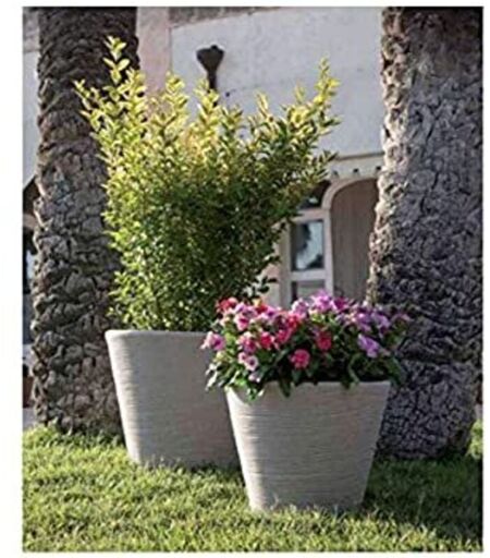 VIVAIO GARDEN FOREST - Vaso Portavaso Caspò Campana Shabby Rigata Vasar in resina cmha 45 - Colore: Bianco Perla