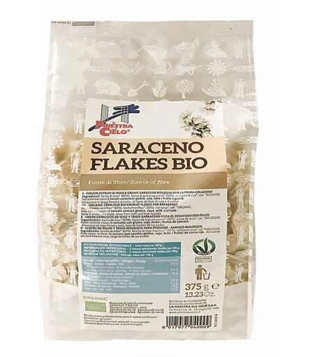 La Finestra Sul Cielo Saraceno Flakes Bio 375 Grammi. Fiocchi Estrusi Di Mais E Grano Saraceno Biologici Per La Prima Colazione. Da Consumare In Alternativa Ai Corn Flakes Tradizionali Per La Prima Colazione A Base Di Mais E Grano Saraceno Dolcificati Solo Con Sciroppo Di Riso. ...