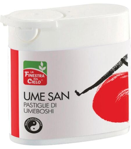 UME SAN PASTIGLIE DI UMEBOSHI - Descrizione Le pastiglie di umeboshi, o Ume San, Finestra sul Cielo, fa parte della tradizione macrobiotica ed è un integratore alimentare utile ad affrontare cali energetici dovuti al caldo o alla stanchezza. Ingredienti Polvere e pasta di prugne umeboshi (98,5%) [p… ...