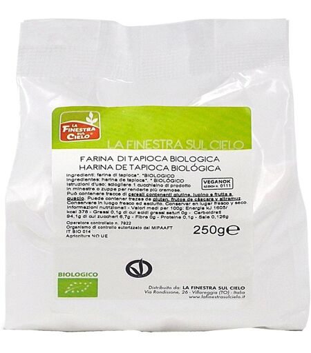La Finestra Sul Cielo Farina Di Tapioca Bio 250 Grammi. Dalla Radice Di Manioca Una Farina Essiccata Adatta Per La Preparazioni Di Creme Zuppe O In Aggiunta Alle Minestre Per Dare Densità. ...
