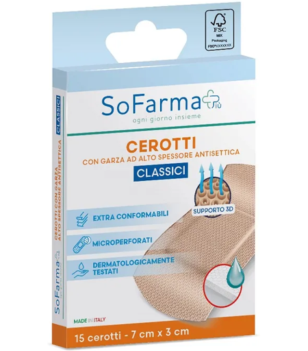 So.Farma.Morra Spa Sofarmapiù Cerotti Classici 15 Pezzi 7x3cm con Garza ad Alto Spessore Antisettica - Cura Avanzata per Ferite e Lesioni