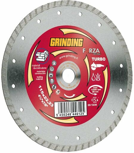 Mod. FORZA TURBO per cemento armato, granito, marmo. Corona zigrinata turbo. Altezza corona 7 mm Foro 22,2 mm Diametro 230 mm ...