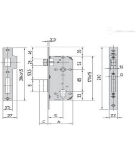 Le serrature da infilare Viro sono compatibili con la maggior parte dei cilindri in commercio e sono le piu' utilizzate per la vasta gamma di entrate disponibili: da 20 a 70 mm. Serratura Viro art. 7435 entrata 35 mm SCHEDA TECNICA: Cassa: completamente chiusa in acciaio verniciato. Fori passanti a norma DIN per l'applicazione di rosette di sicurezza. Scrocco standard e catenaccio: in ottone massiccio sia nelle versioni ottone che in quelle acciaio (eccetto il catenaccio per le entrate 20/25/30). Scrocco reversibile con una semplice operazione. Versione in ottone: con scrocco standard (per la massima sicurezza); Meccanismo: interasse 85 mm; Quadro maniglia 8 mm; 2 mandate per le entrate da 35 a 70 mm; 1 mandata per le entrate da 20 a 35 mm (entrata 35 mm a 1 o 2 mandate). Piastra e contropiastra: in acciaio (serie 7435) o in ottone (serie 7431). Piastra asportabile e sostituibile. Contropiastre a bordi quadri con aletta di protezione dello stipite. Fornite con: viti di fissaggio per ...