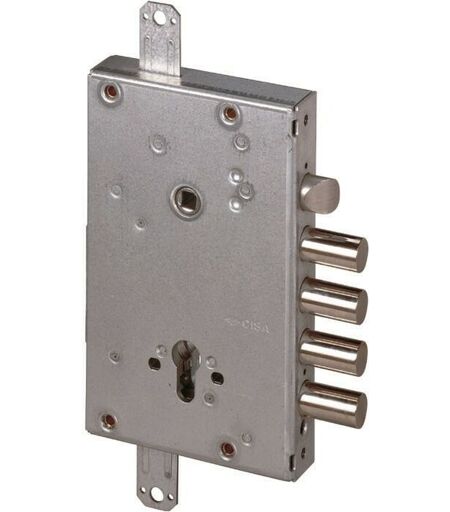SERRATURA CISA 56515 48B A CILINDRO EUROPEO chiusura triplice con quattro catenacci e scrocco. Scatola mm.125x203,entrata mm.64,applicazione planare. BLOCCO CATENACCIO IN CASO DI ESTRAZIONE FORZATA DEL CILINDRO Per le isole minori ( escluse Sicilia e Sardegna) e laguna veneta, è previsto un supplemento riguardo il costo del trasporto da richiedere prima di effettuare l’ordine. ...