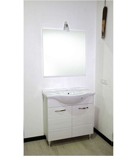 in MDF ricoperto di PVC. Mobile due ante. Completo di specchio con illuminazione e lavabo integrale (rubinetto escluso). Dimensioni base cm 82x35x84h Dimensioni specchio cm 70x80h Colore bianco portuna ...