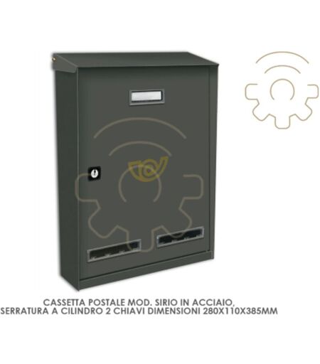 Cassetta postale moedllo Sirio, in acciaio,con tetto, serratura a cilindro con 2 chiavi, colore Grigio Ghisa dimensioni mm 280x110x385 h. In negozio sono presenti altri modelli di cassette postali e bacheche. Contattaci, inoltre, per ricevere preventivi gratuiti. ...