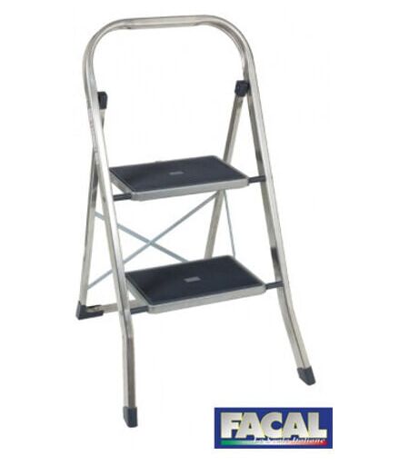 in alluminio solido e leggerissimo a 2 gradini. Gradini 30 x 20 cm ricoperti in gomma antiscivolo. Blocco di sicurezza dei gradini. Piede anteriore posteriore anti scivolo. Montanti davanti 35 x 20 mm - retro 30 x 20 mm. Chiuso occupa soltanto 4 cm. Altezza piattaforma 47 cm. Aperta a forbice 47 x 50 x h 83 cm. Altezza chiusa 91 cm. Portata max 150 kg. Peso 3,5 Kg. ...