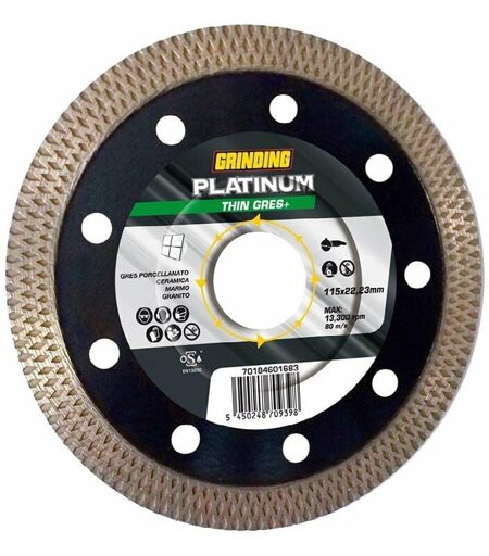 Mod. PLATINUM THIN GRES per gres porcellanato. Corona continua ondulata e flangia rinforzata. Foro 22,2 mm Spessore 1,2 mm Diametro 115 mm ...