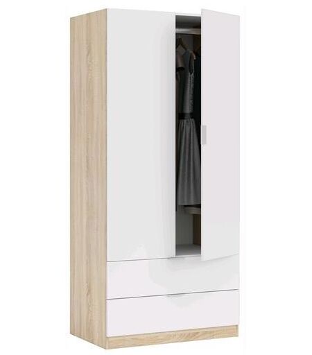 FORES HABITAT S.L.U. Armadio 2 Ante+2 Cassetti Laccati Bianchi Cm.80X52X180H Struttura Rovere
