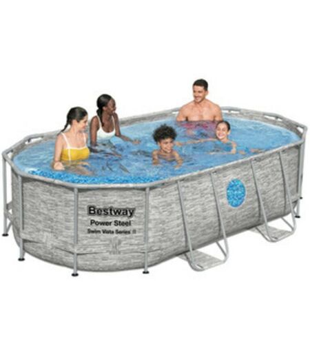 Bestway Piscina Fuori Terra 56714 Con Oblò Swim Vista Ovale 427x250x100 cm
