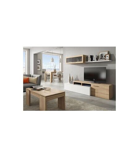 FORES HABITAT S.L.U. Kit Parete Attrezzata Mobile Basso Tv Cm.200x41x44 Rovere Soggiorno Vetrinetta