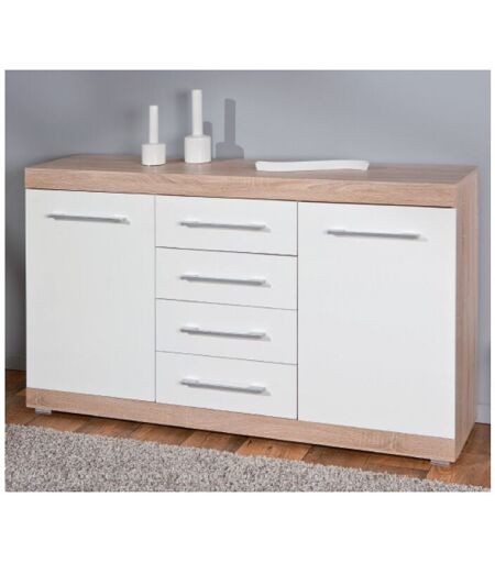 KIT MOBILE BUFFET LUBLIN 4 ANTE LAMINATO FINITURA ROVERE/BIANCO CM. 155x40x87H Mobile Buffet di colore rovere/bianco laccato con 2 ante e 4 cassetti. 2 ripiani interni regolabili. Struttura compatta ed estremamente resistente, realizzata in KF-board e verniciata in resina melamminica, quindi estremamente durevole.Dimensioni cm. 155x40x87h. ...