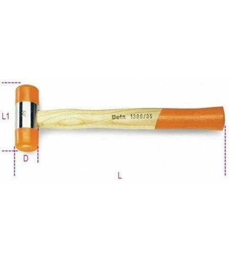 Descrizione Mazzuole con battenti intercambiabili in materiale plastico con manico in legno. D mm: 35 L mm: 310 L1 mm: 95 Testa battente: 35mm Peso g: 365 ...