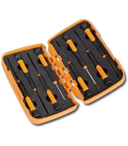 Serie di 8 microgiravite, lama piatta e phillips in astuccio plastico rigido. %1257lp:0.4x2; 0.4x2.5; 0.5x3; 0.6x3.5; 0.8x4mm %1257ph:ph00; ph0; ph1 Profilo : Taglio/croce phillips Unità di misura : Millimetri/ph Lunghezza : 60 mm Contenuto serie : Beta 1257lp 0.4x2- 0.4x2.5- 0.5x3- 0.6x3.5- 0.8x4 mm, beta 1257ph 00-0-1 Pezzi per confezione : 8 ...
