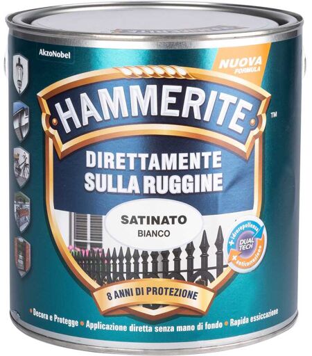 Hammerite SMALTO ANTIRUGGINE SATINATO 2,5 l BIANCO 8-10 m² CON 1 l