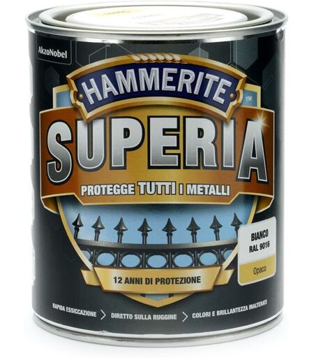 HAMMERITE - Superia smalto metallo antiruggine interno e esterno, Opaco Bianco, 750 ml