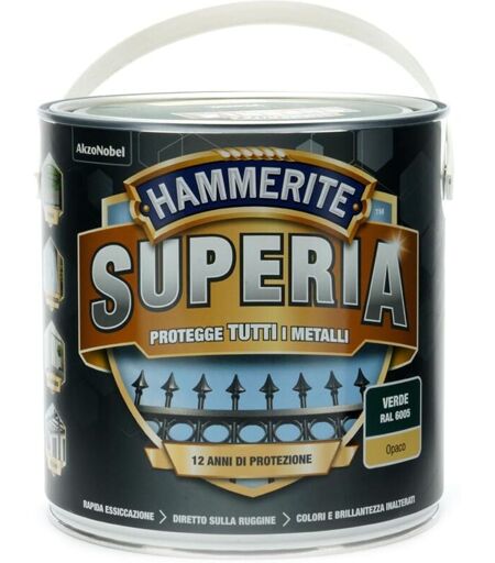 HAMMERITE - Superia smalto metallo antiruggine interno e esterno, Opaco Verde, 250 ml