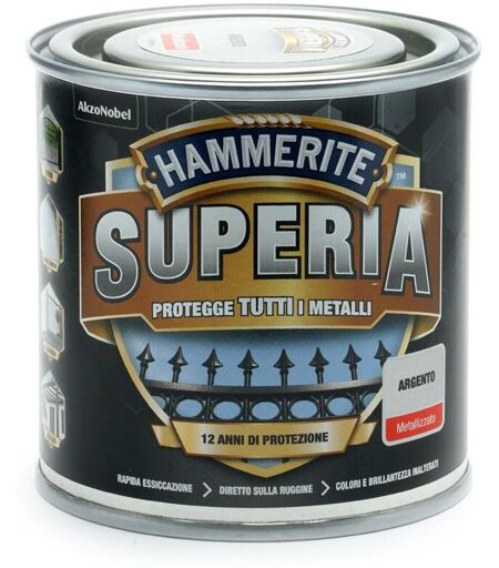 HAMMERITE - Superia smalto metallo antiruggine interno e esterno, Metallizzato Argento, 250 ml