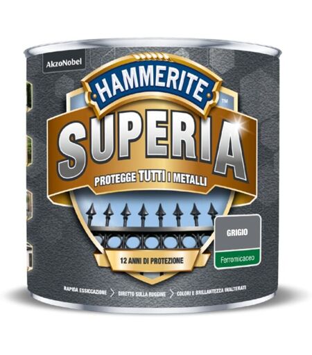 HAMMERITE - Superia smalto metallo antiruggine interno e esterno, Ferromicaceo Grigio, 750 ml