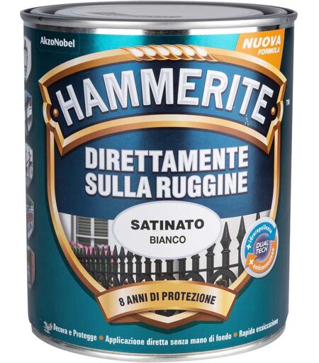 Hammerite SMALTO ANTIRUGGINE SATINATO 0,75 l BIANCO 8-10 m² CON 1 l