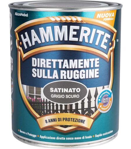 Hammerite SMALTO ANTIRUGGINE SATINATO 0,75 l GRIGIO SCURO 8-10 m² CON 1 l