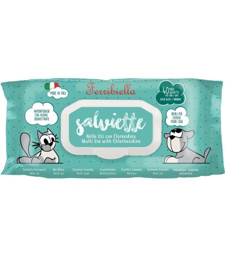 Ferribiella Salviette Detergenti Milleusi Igienizzanti con Clorexidina per Cani e Gatti 1 CONFEZIONE